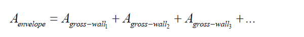 Aenvelope: envelope area (excluding roof) of dwelling units (m2). It is the gross external wall area (includes the area of the walls and the openings such as windows and doors).