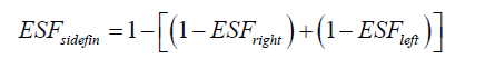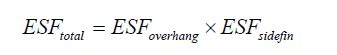 SHGC Equivalent is the SHGC for a non-opaque component with a permanent external shading projection (overhang and side fins). It is calculated by multiplying the External Shading Factor (ESF) with the SHGC of unshaded non-opaque component. ESF values are defined based on the projection factor (PF). The procedure for calculation is given below: