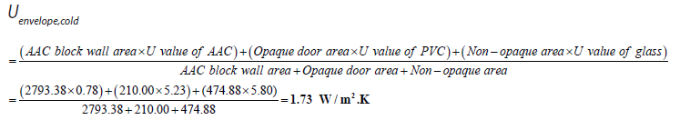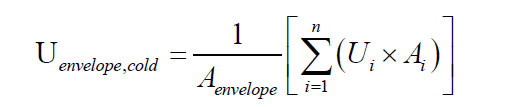 3.5.3 The calculation of the building envelope (except roof) shall be carried out, using Equation 5 as shown below.
