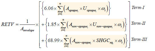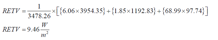 3.4.3 The RETV calculation of the building envelope (except roof) shall be carried out, using Equation 4 as shown below.