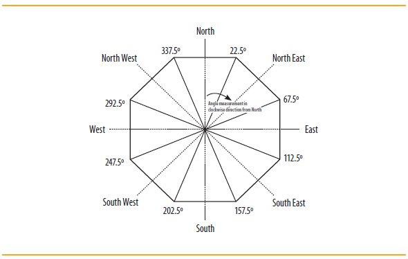 | Orientation | North | North-east | East | South-East | South | South-west | West | North-west |
